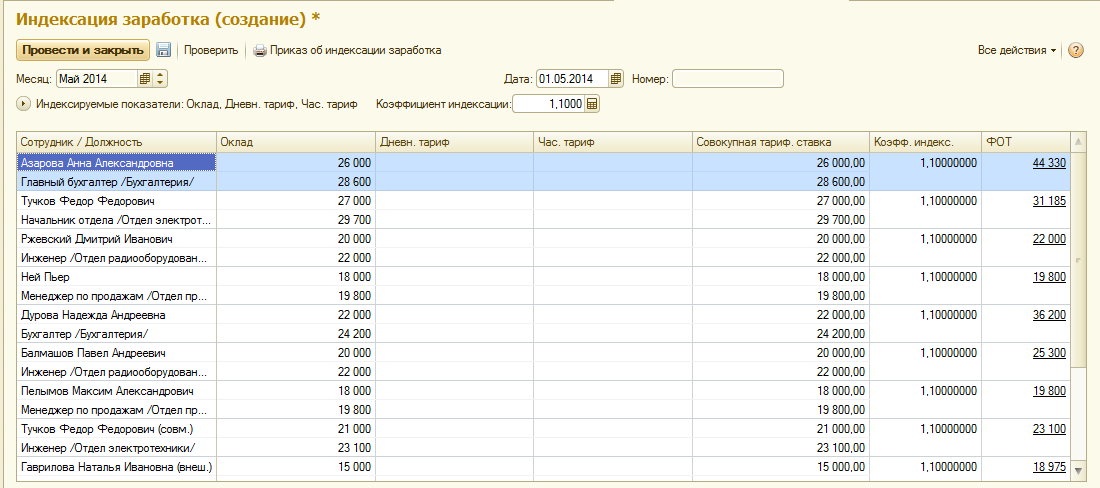 В документе также индексируются показатели, входящие в состав совокупной тарифной ставки. Этим же документом регистрируется коэффициент индексации для отпусков.
