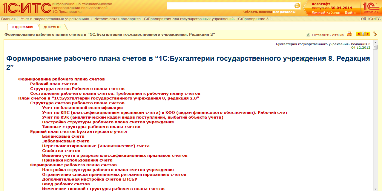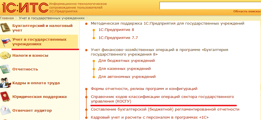 Вся информация в справочнике "Методическая поддержка 1С:Предприятия для государственных учреждений" сгруппирована по темам в многоуровневом тематическом рубрикаторе. Изменения отражаются в рубрике "Новые и измененные разделы".