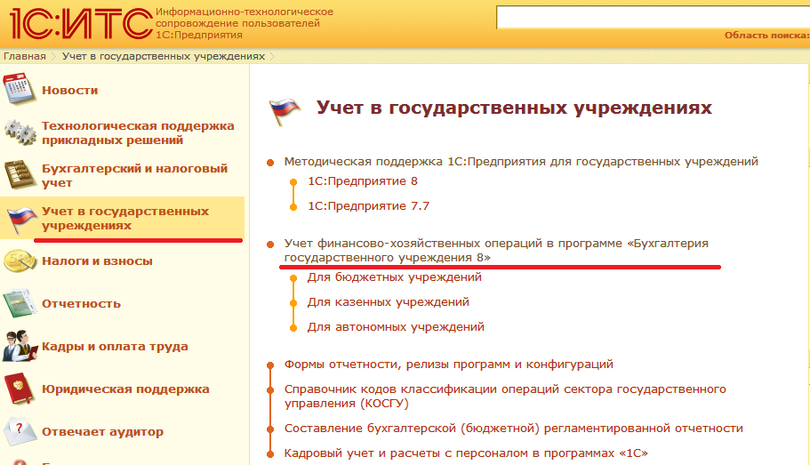 - Выберите "Учет финансово-хозяйственных операций в программе "Бухгалтерия государственного учреждения 8".