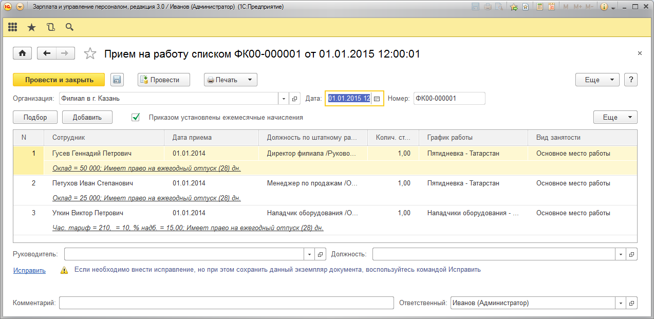 Оклад=50 000, Перс. надбавка=10 000 |