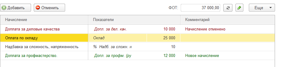Цветовая подсказка-легенда аналогична той, которая используется при изменении штатного расписания.