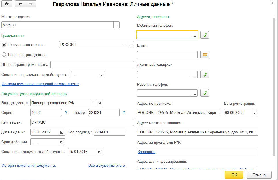 Основная информация о сотрудниках, такая как фамилия, имя и отчество, гражданство, паспортные данные, может изменяться во времени.