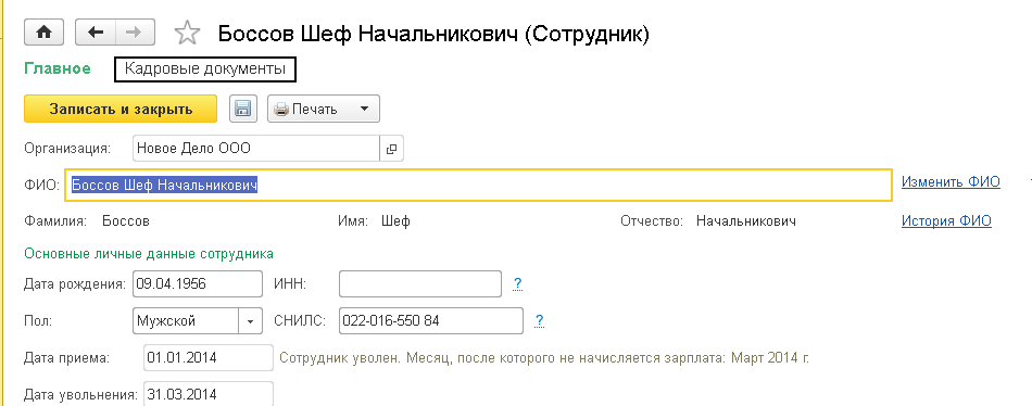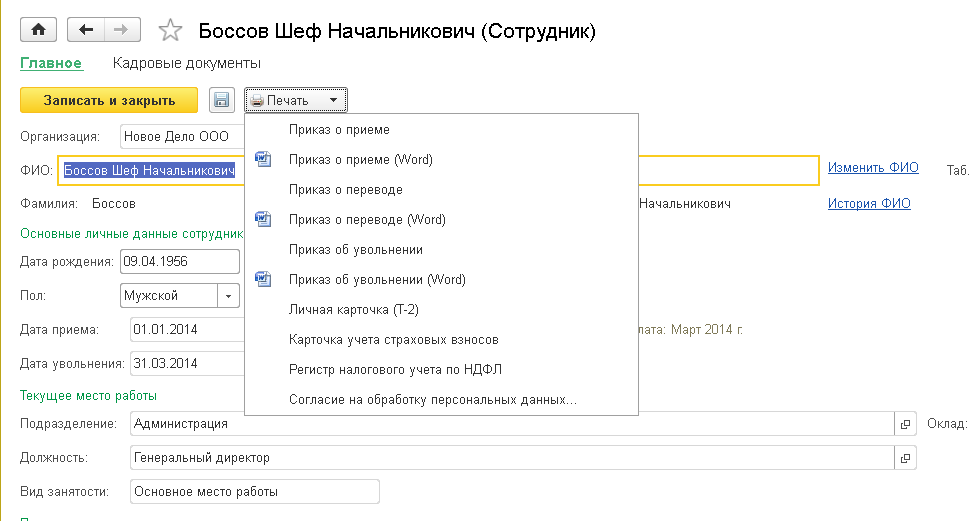 Данный документ доступен только при варианте кадрового учета «Полный». Внести его можно из формы «Сотрудники».