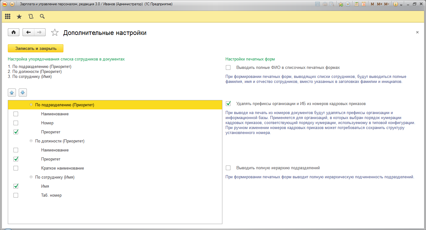 Рассмотрим дополнительные настройки, влияющие на формирование отчетов :
