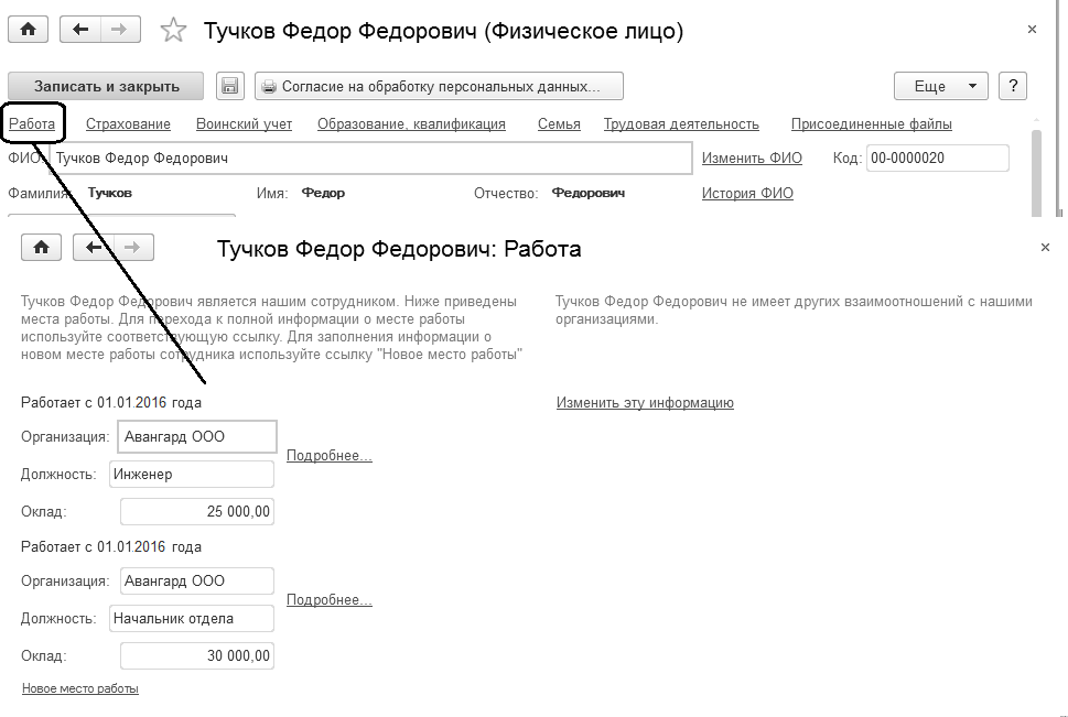 Карточка физического лица и карточка сотрудника