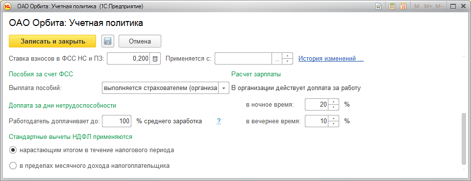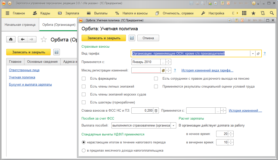 Настройка учетной политики организации