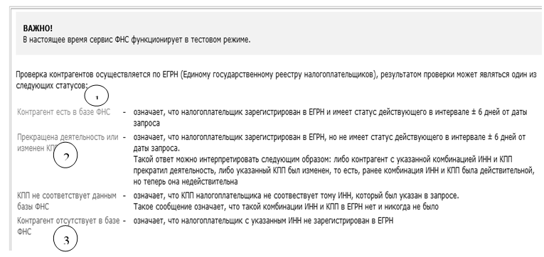 Результат проверки отражается в карточке контрагента, где: 1 – зеленый цвет, 2 – серый цвет. 3 – красный цвет (рис. 1.11.5).