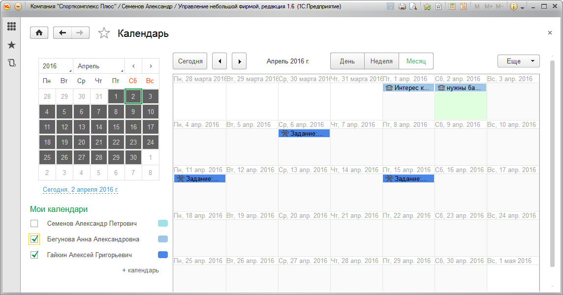 Информация, присутствующая в Календаре сотрудника и Планировщике, поможет руководителю контролировать ситуацию по сотрудникам – кто чем занимается, а также выявлять ситуации неравномерной загрузки персонала.