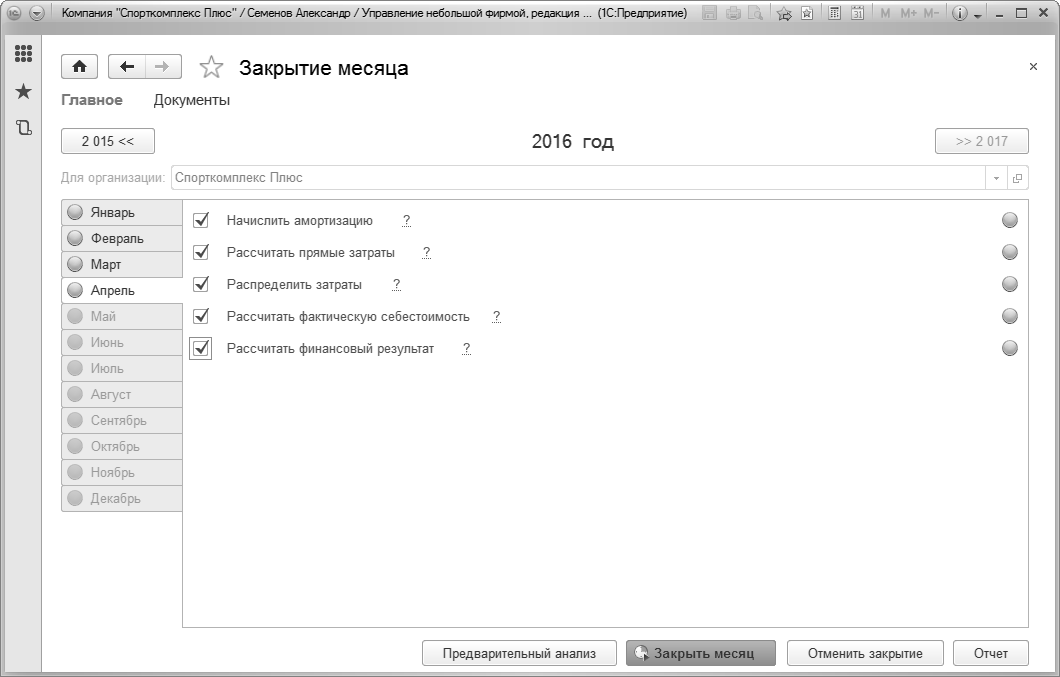 Напомним, что рассматриваемый здесь метод расчета себестоимости называется "директ-костинг". Этот метод является сегодня наиболее часто используемым. Для реализации метода полной себестоимости (когда управленческие расходы включаются в себестоимость) необходимо ввести в план счетов отдельный счет с типом "Косвенные затраты" (например, "26") и учитывать управленческие расходы на нем. Тогда документом "Закрытие месяца" управленческие расходы будут относиться на себестоимость.