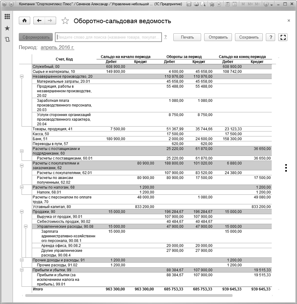 Рис. 206. Общепроизводственные расходы в отчете "Прямые и косвенные затраты", после ввода документа "Закрытие месяца"