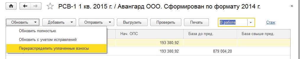 - Работать с уплатой (если отчетность подразумевает перераспределение уплаченных взносов)