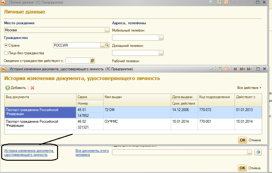 Это будет основной документ, используемый в отчетности. Помимо этого можно вводить и сведения о других документах, перейдя по ссылке "Все документы этого человека".