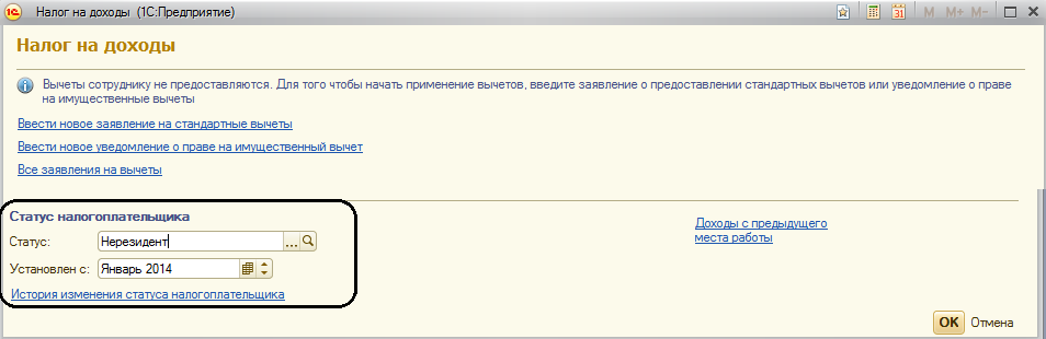 Если же физлицо имеет иной статус для целей налогообложения НДФЛ, то в конфигурацию необходимо эти сведения внести.