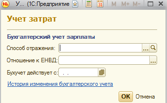По ссылке "Учет затрат" указывается способ отражения зарплаты в учете, если он отличается от варианта в целом по организации или подразделению.