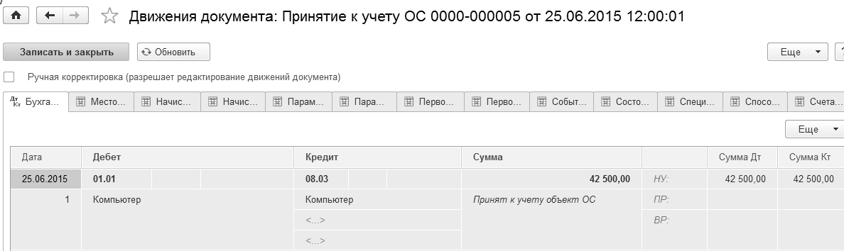 Рис. 24.1.5. Движение документа "Принятие к учету ОС",