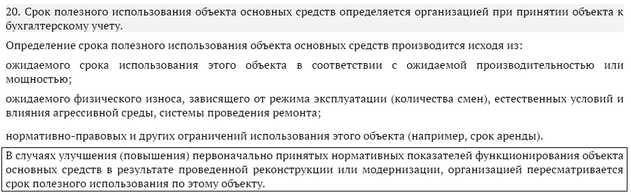 пункта 20 ПБУ 6/01. При этом срок для бухучета может совпасть с налоговым.