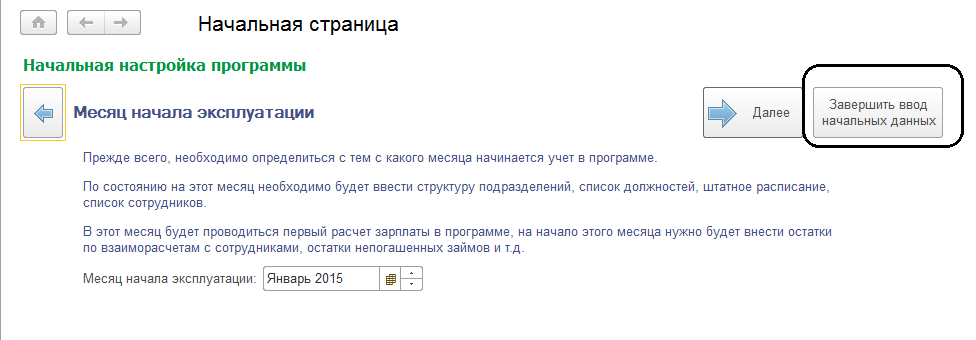 После этого можно вывести на печать перечень выполненных настроек и список добавленных начислений. Если пользователю больше не потребуется стартовый помощник, достаточно завершить начальную настройку (стартовый помощник всегда доступен из пункта главного меню: все функции / обработки / Начальная настройка программы, однако после завершения настроек вызывать его дополнительно нецелесообразно, все настройки можно будет уточнить в соответствующих разделах программы).