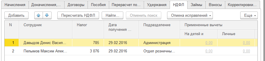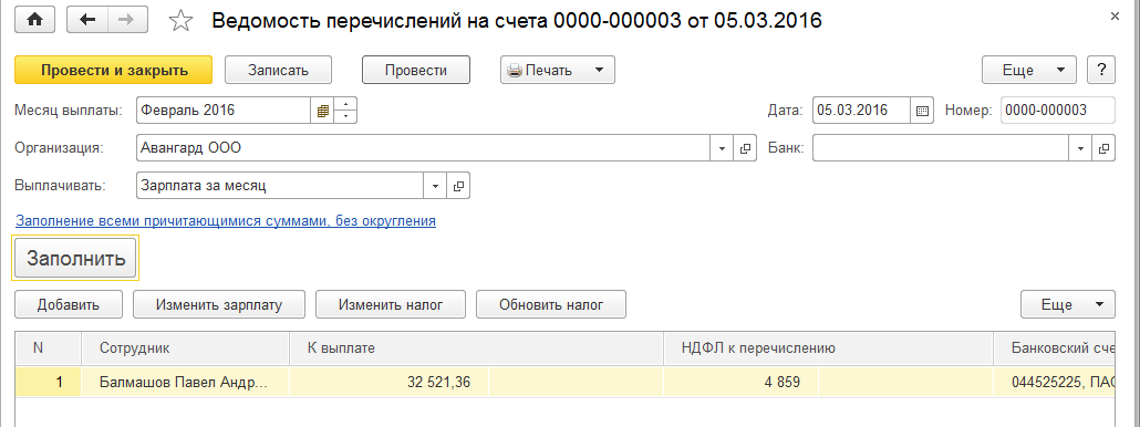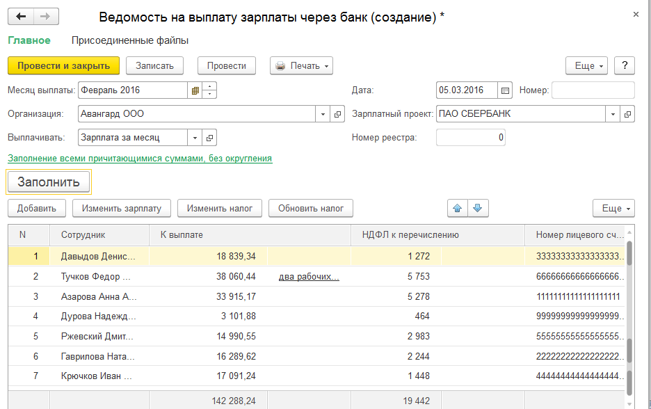 Для ООО "Авангард": Через банк по зарплатному проекту и Через банк перечислением на лицевые счета. Реквизиты уплаты по НДФЛ для всех документов: № 35 от 05.03.2016.