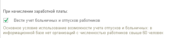 Если в Параметрах учета установлен флаг Вести учет больничных и отпусков,