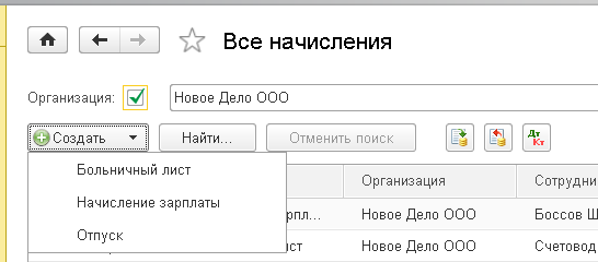 в программе  становятся доступны документы «Больничный лист» и «Отпуск».