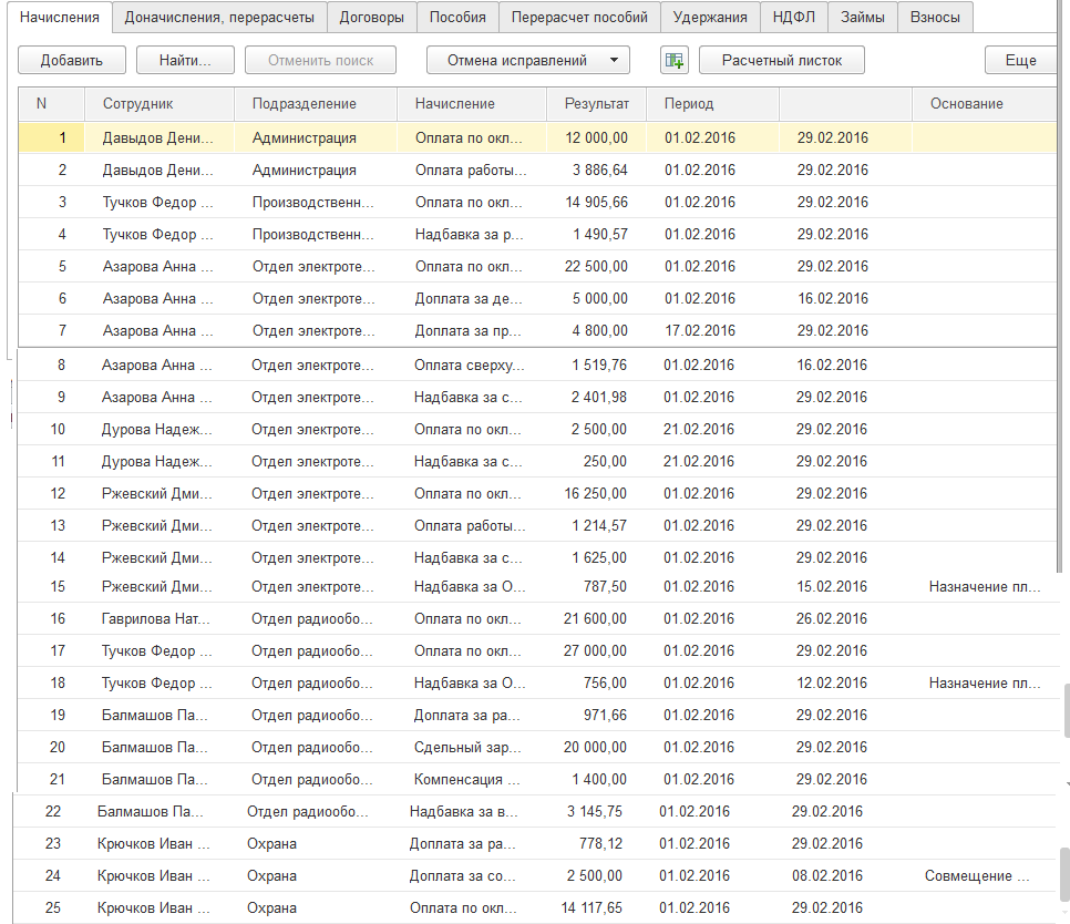 Начисление зарплаты