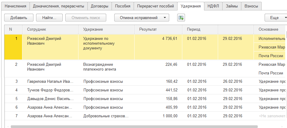 Произведены удержания постоянного характера