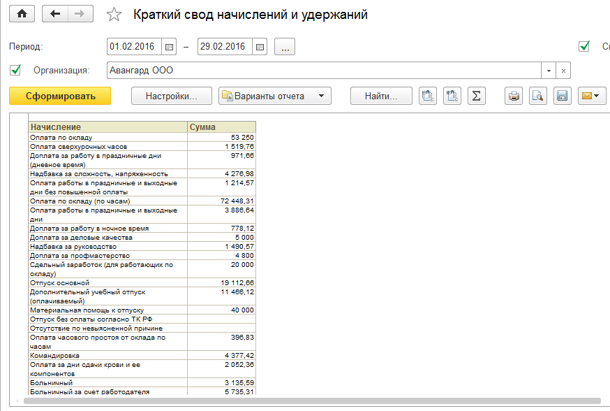 1. Рассчитаем зарплату за февраль 2016 года для ООО "Авангард".