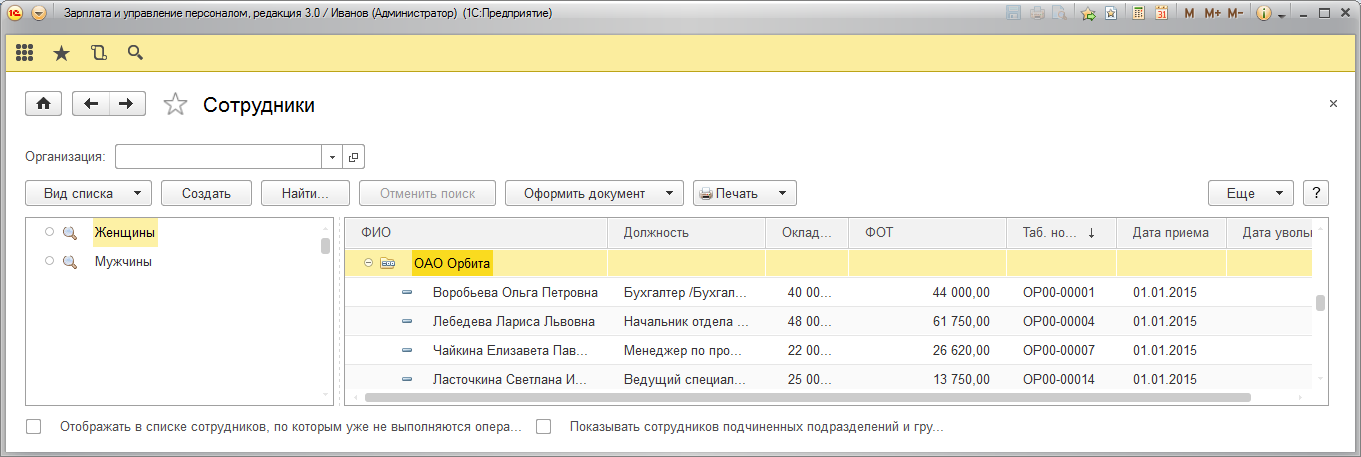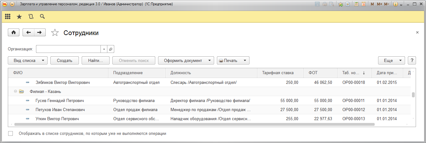 Рассмотрим различные варианты настройки отображения списка сотрудников.