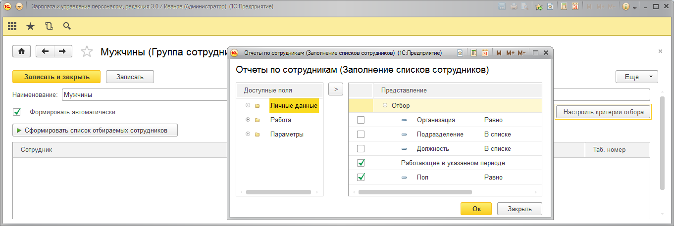 Создадим группы сотрудников - "Мужчины" и "Женщины"