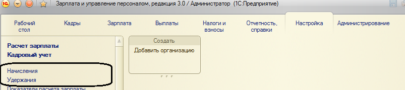 Списки начислений и удержаний доступны из раздела "Настройка".