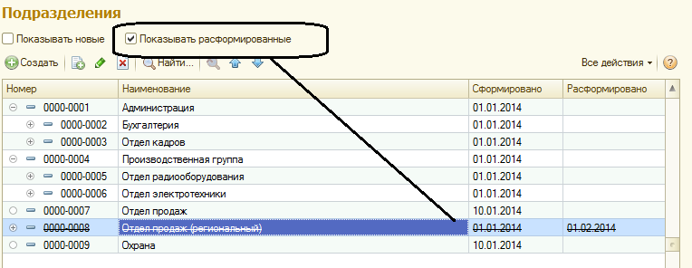 Если подразделение "Отдел продаж (региональный)" не отображается, следует установить флаг "Показывать расформированные" в справочнике "Подразделения" и также выполнить настройку выплаты в кассу.