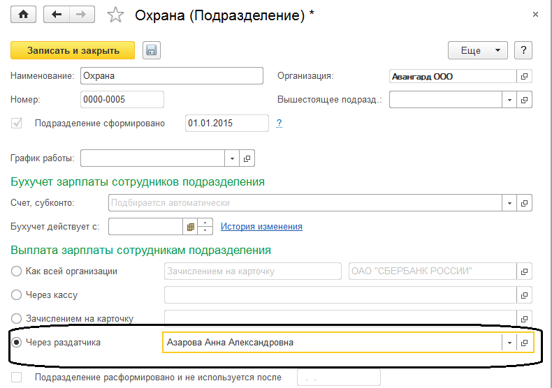 В качестве раздатчика выбирается физическое лицо из справочника "Физические лица", ему присваивается соответствующая роль "раздатчик". Как при настройках, так и при выдаче зарплаты в дальнейшем конкретный раздатчик указывается обязательно.