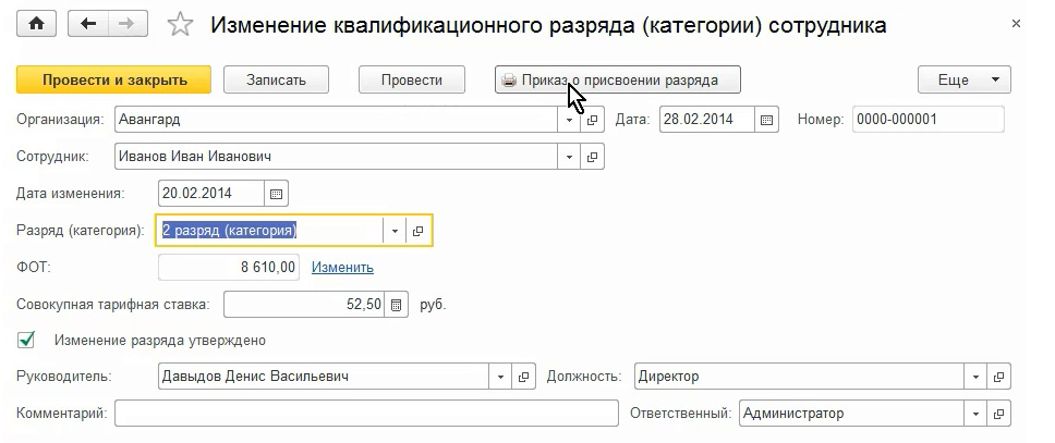 "Изменение квалификационного разряда".