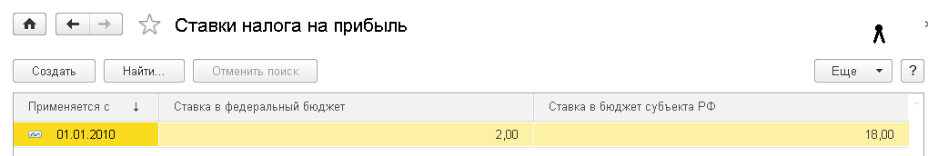 Закладка «Налог на прибыль» определяет возможность применения разных ставок налога на прибыль для обособленных подразделений, которые имеют право уменьшать ставку налога на прибыль в региональный бюджет. По умолчанию ставка налога на прибыль применяется единая для всех организаций, по которым ведется учет в информационной базе.