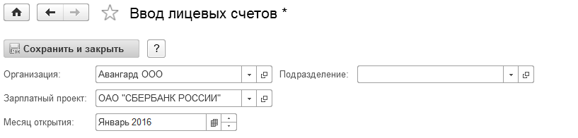 Сохраним и закроем форму ввода лицевых счетов – счета будут доступны в карточке сотрудника.