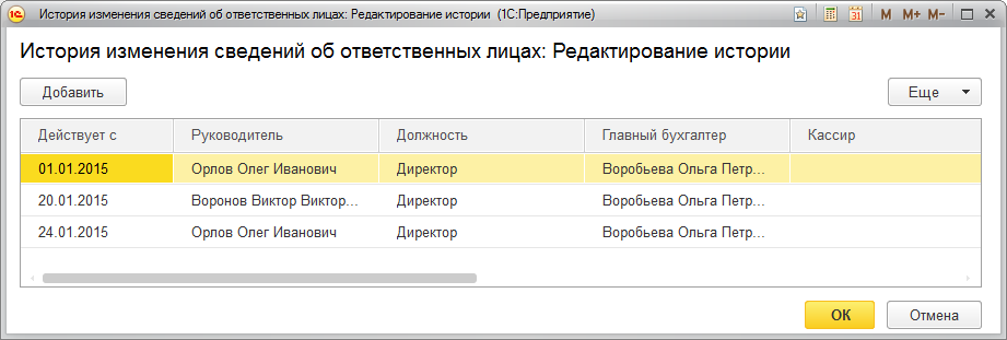 Просмотр истории изменения сведений об ответственных лицах.