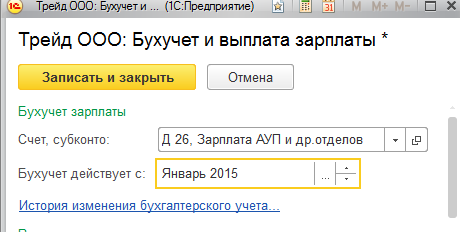 2. Аналогичным образом настроим отражение зарплаты сотрудников ООО «Трейд» на 26й счет по умолчанию для всей организации.