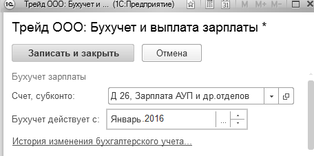 2. Аналогичным образом настроим отражение зарплаты сотрудников ООО "Трейд" на 26й счет по умолчанию для всей организации.