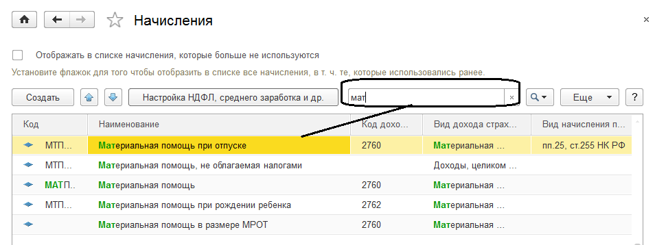 Пример показан для материальной помощи с вычетом в 4тыс., остальные настраиваются аналогично.