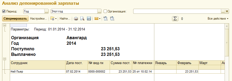 Отчеты по депонированной зарплате