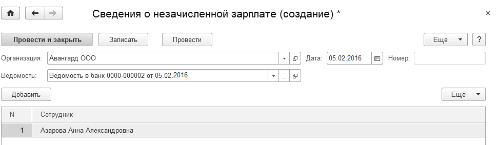Если зарплата зачислена не полностью, то на основании ведомости на выплату можно ввести документ "Сведения о незачисленной зарплате"