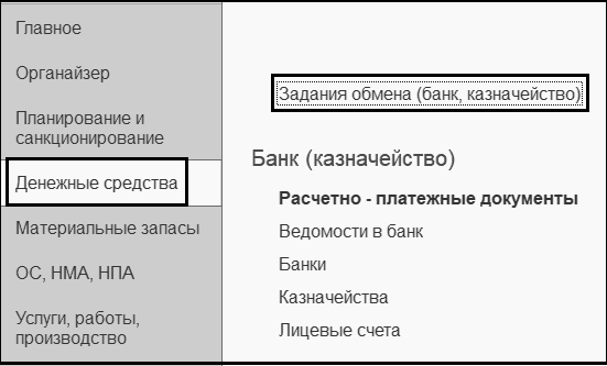 Задания обмена (банк, казначейство) раздела
