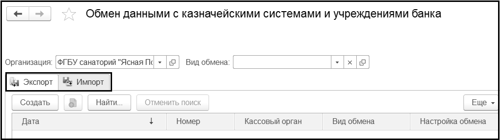 Загрузка форматов обмена, настройка правил обмена с казначейством (банком) и способов обмена выполняются в форме
