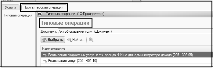 Типовая операция – выбирается из списка Типовые операции.