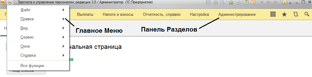 Переходя по разделам, пользователь видит, какие функции обеспечивает раздел и какие объекты в нем доступны, т.е. навигацию раздела.