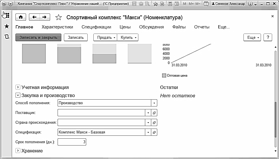 Для номенклатуры типа "Сборка" или "Узел" указывается также спецификация, по которой производится эта номенклатура.