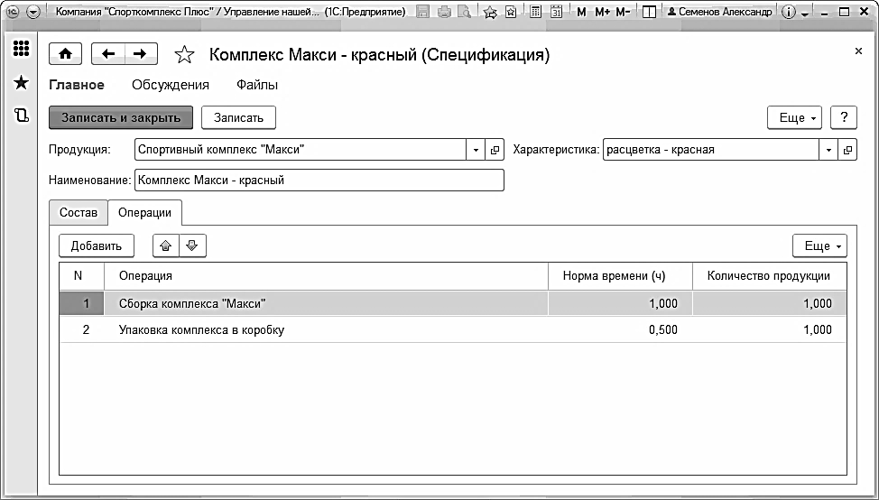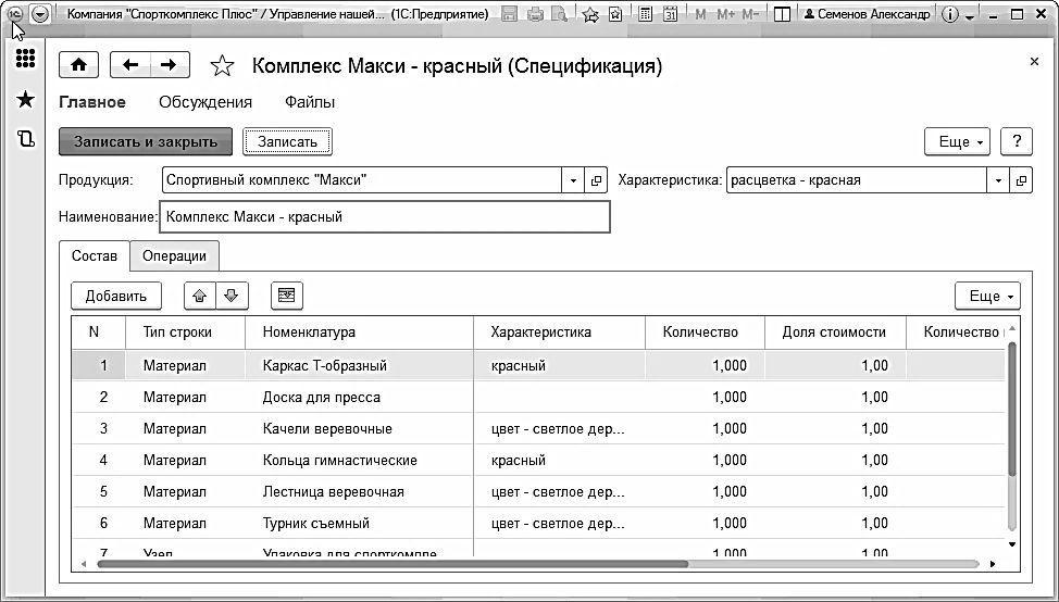 Табличная часть спецификации содержит две вкладки – "Состав" и "Операции".
