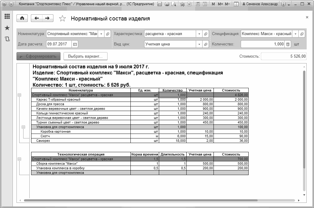 Обратим внимание на то, что если в спецификации присутствуют узлы или сборка, то в отчете они разворачиваются до конечных материалов и техопераций (пример "Упаковка для спорткомплекса" в отчете на Рис. 44).
