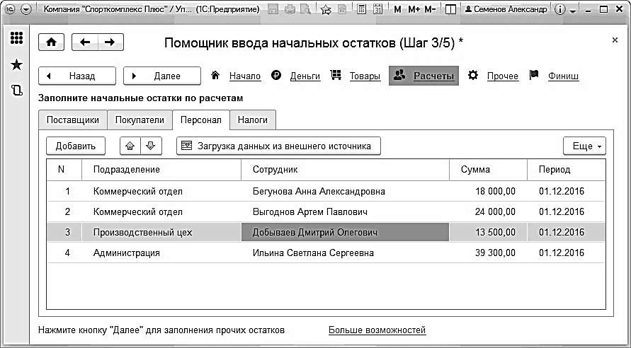 Рис. 54. Ввод остатков по расчетам с персоналом
