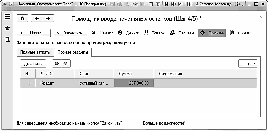 Рис. 56. Ввод начальных остатков по прочим разделам